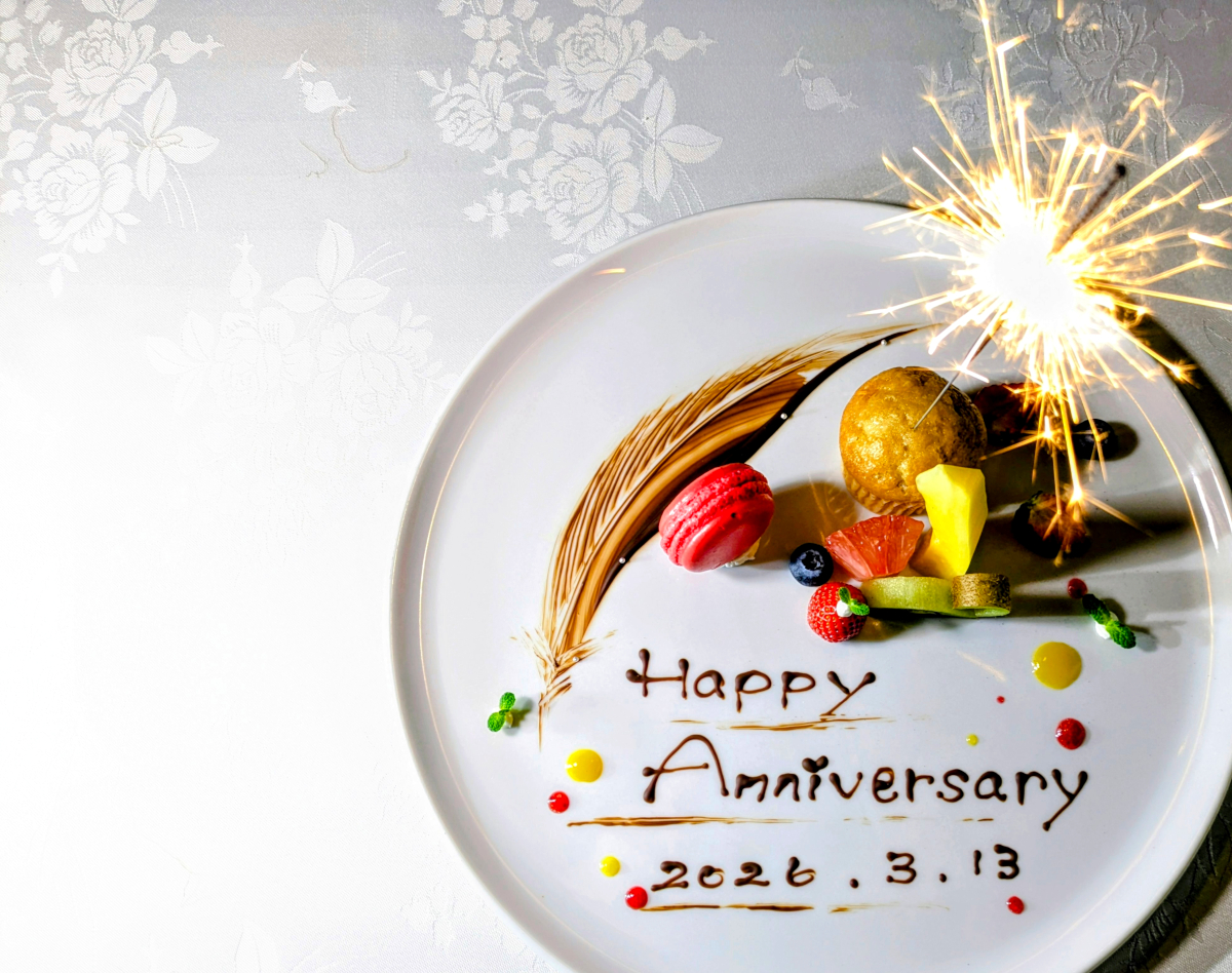 特別な日を彩る特別なアニバーサリープレート。お二人でお祝いするも、ご家族で