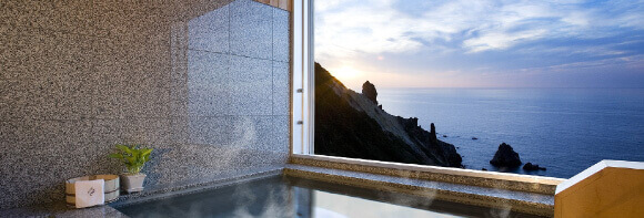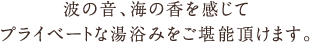 客室露天風呂(窓開閉式)では、波の音、海の香を感じてプライベートな湯浴みをご堪能いただけます。